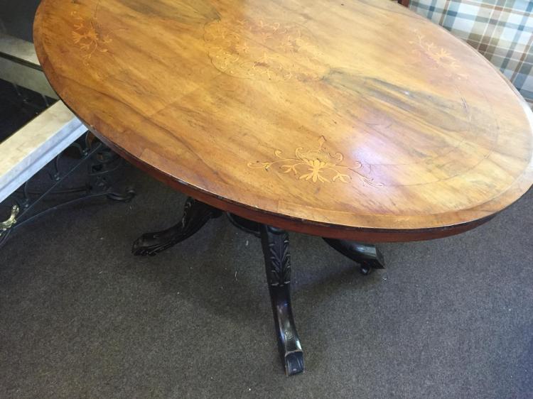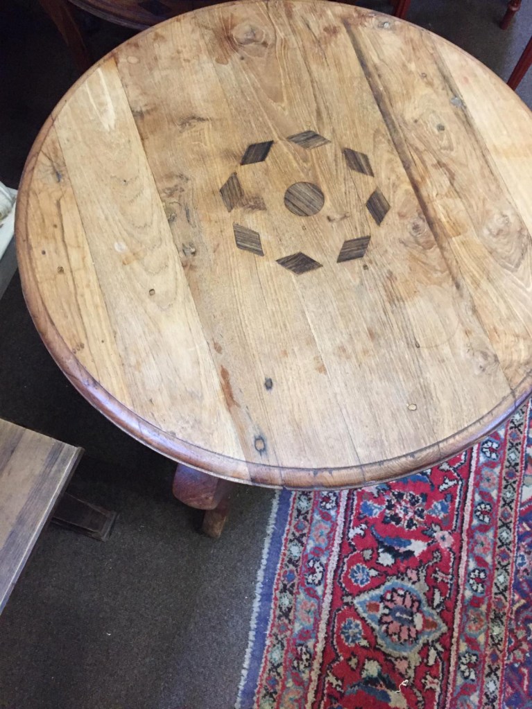Round Vintage Inlaid Breakfast Table. 60cm across, 70cm high.